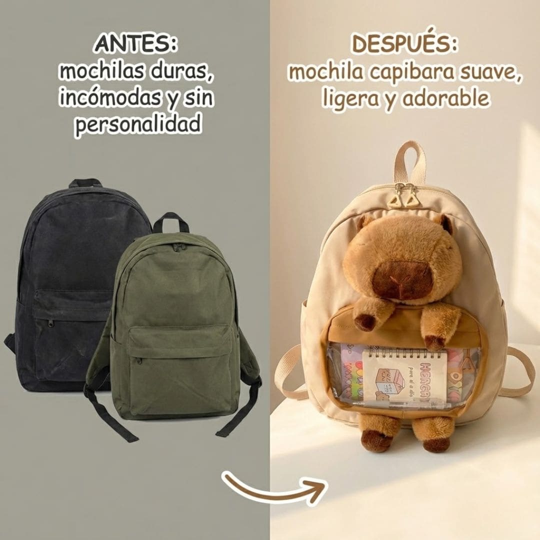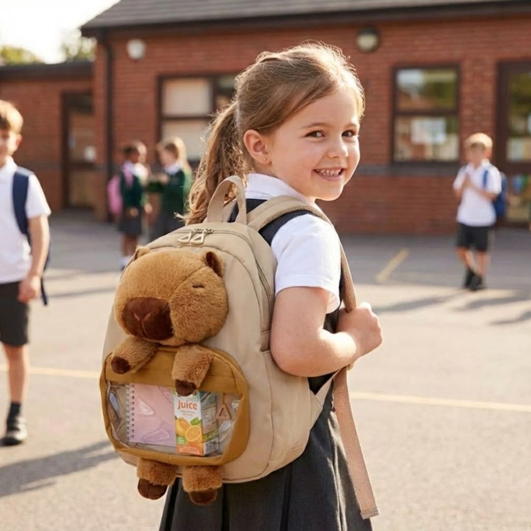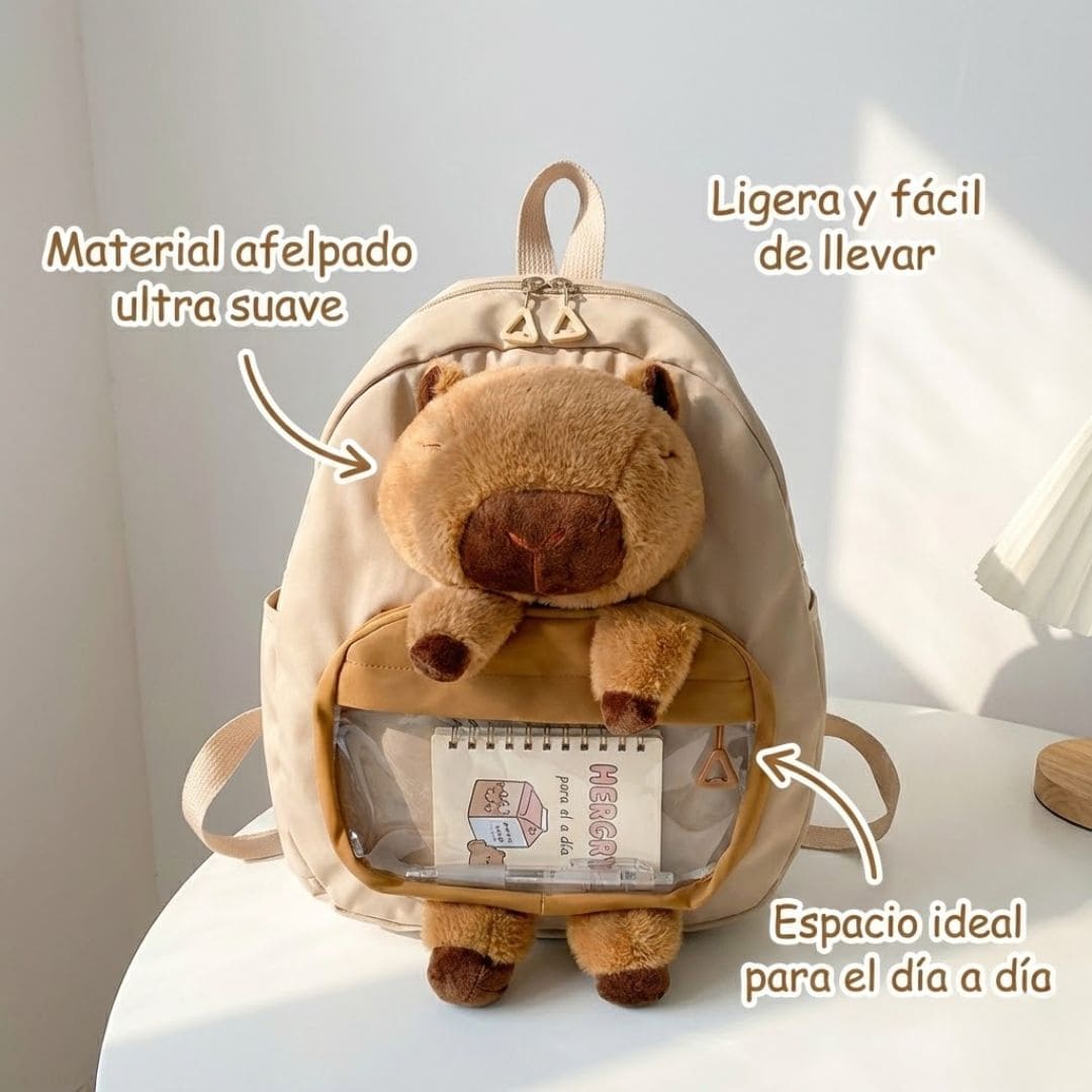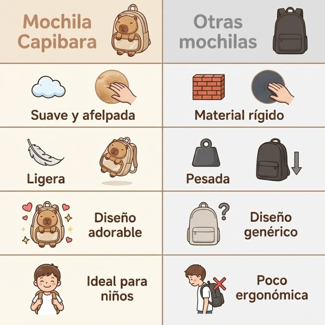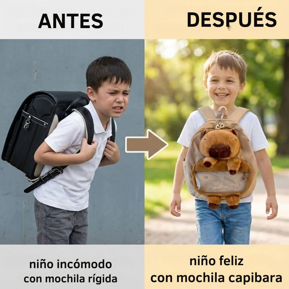 Con la Mochila Capibara, sentirá comodidad, ligereza y alegría cada vez que salga de casa gracias a su material suave y diseño pensado para niños.