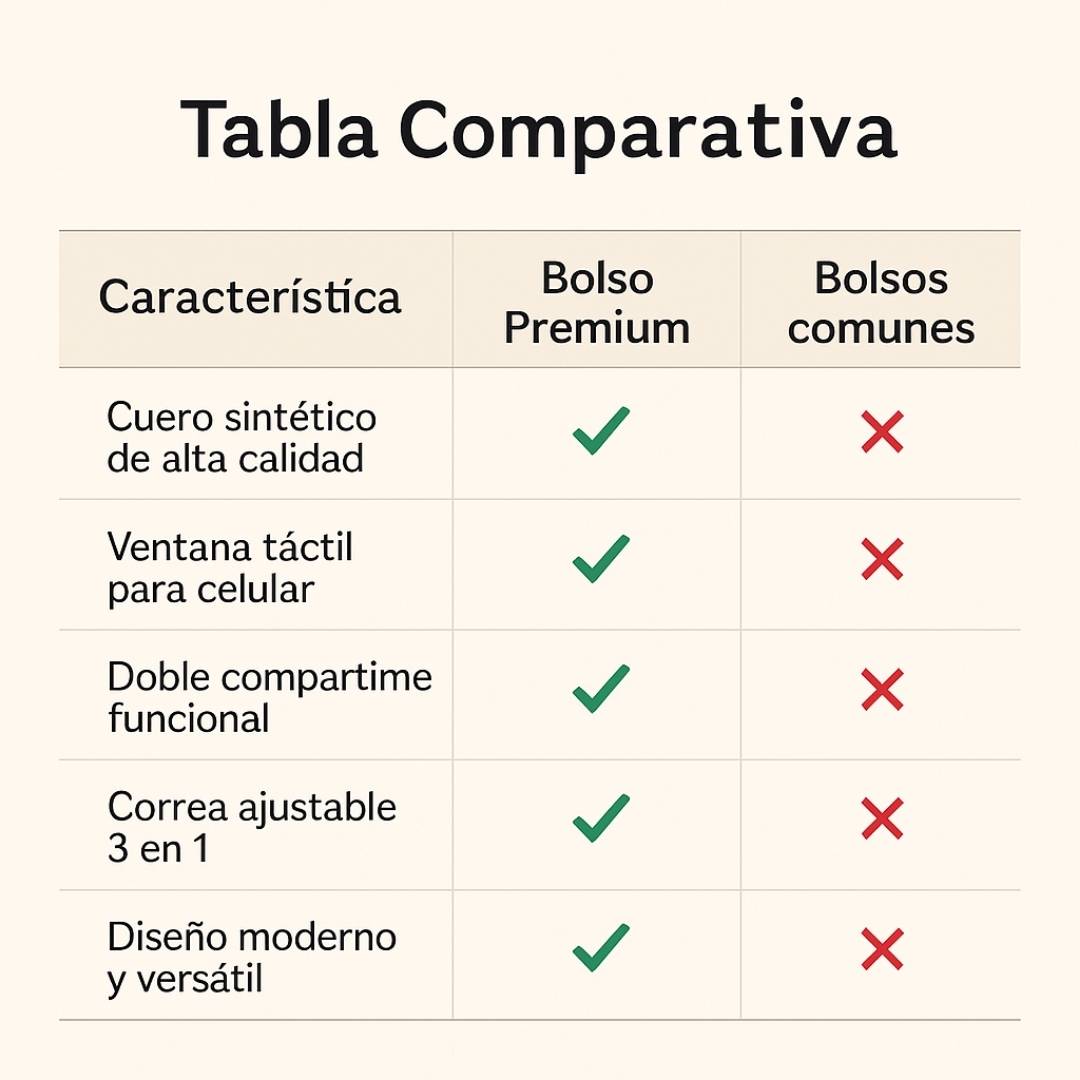 Este bolso combina estilo, organización y comodidad, haciéndote sentir más ligera, segura y elegante en cualquier ocasión.